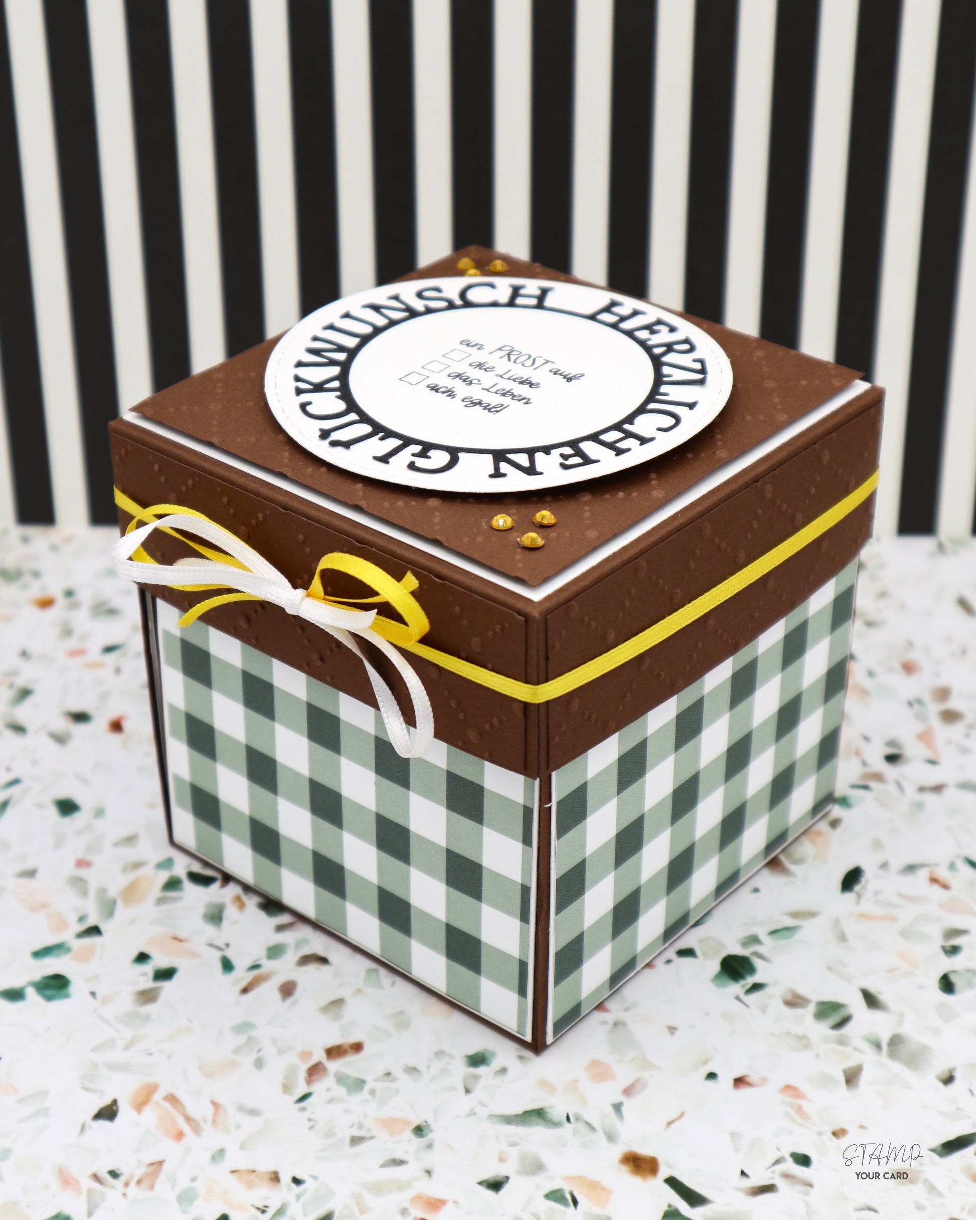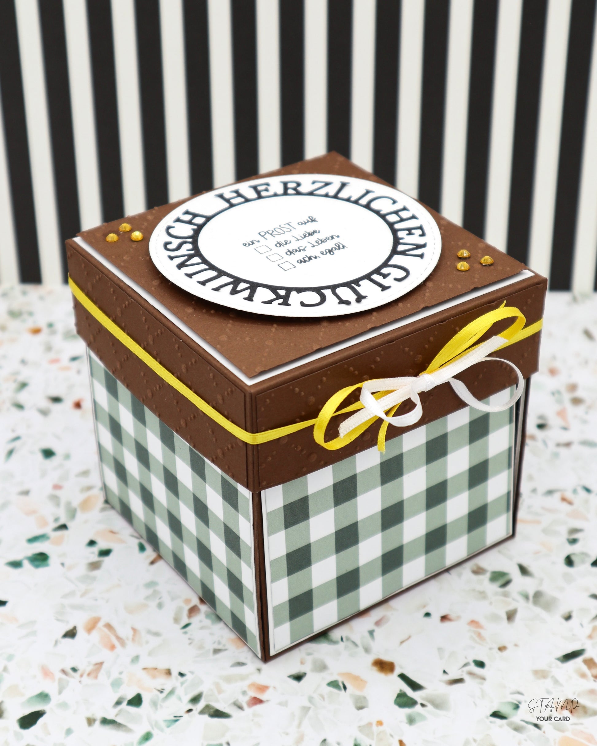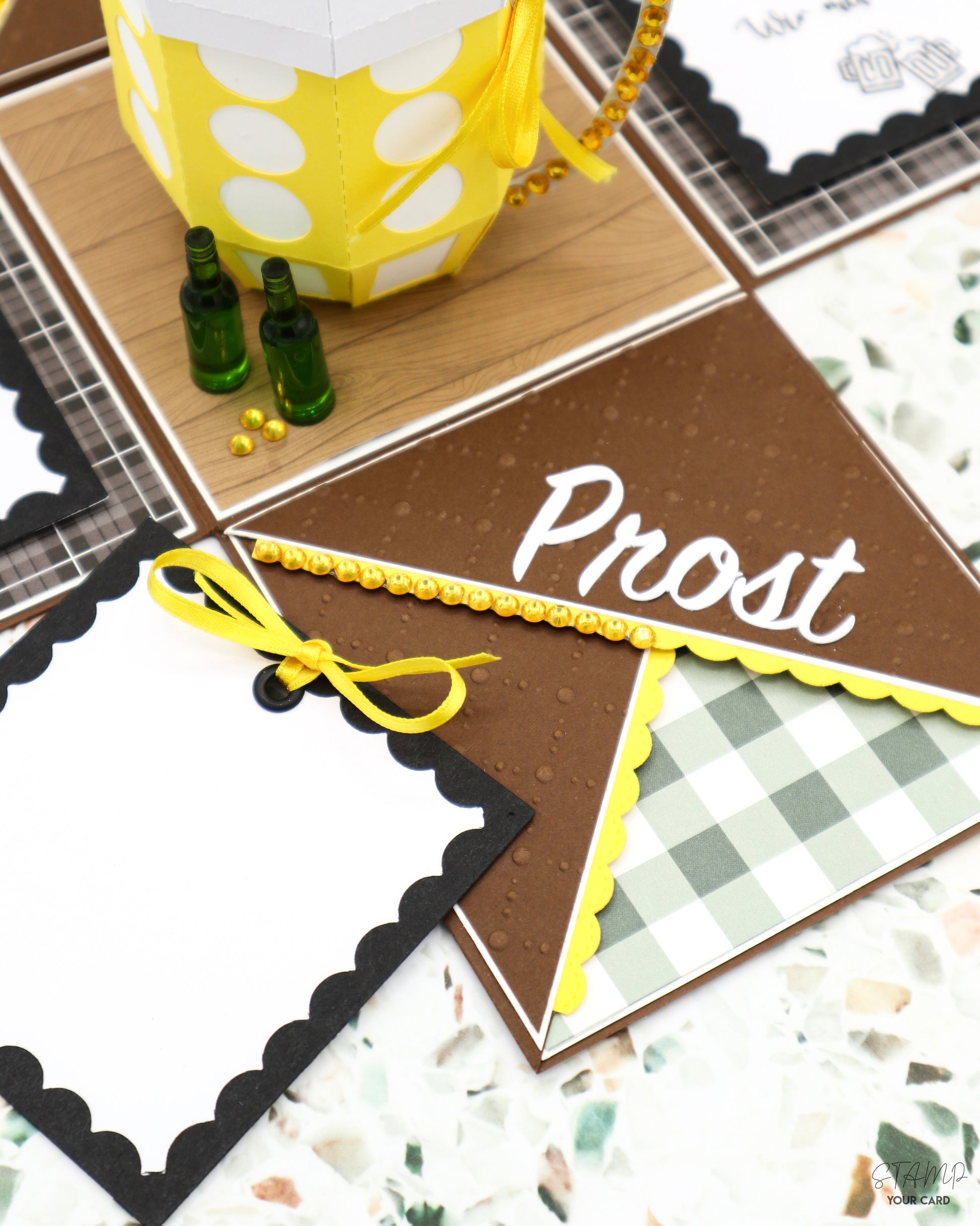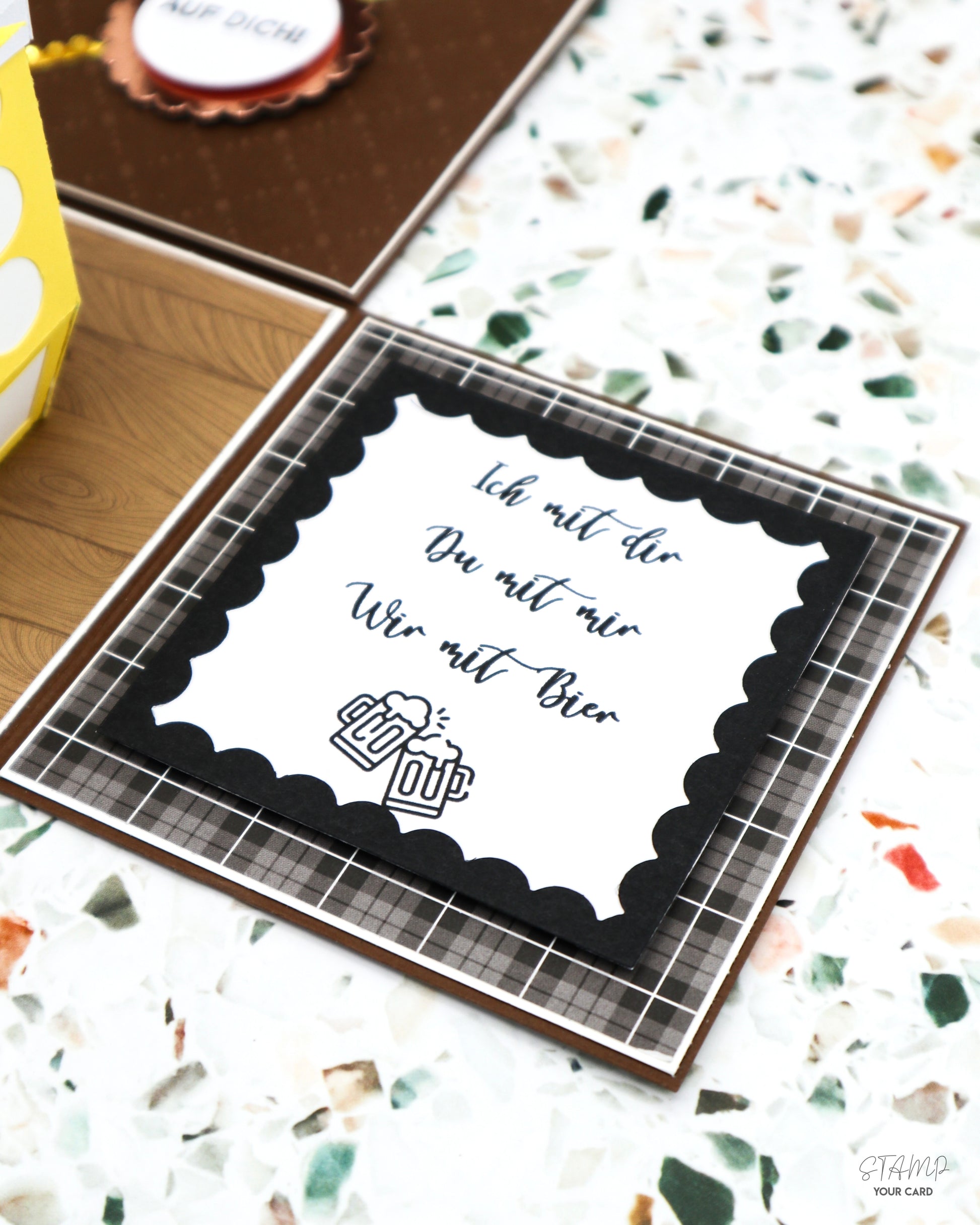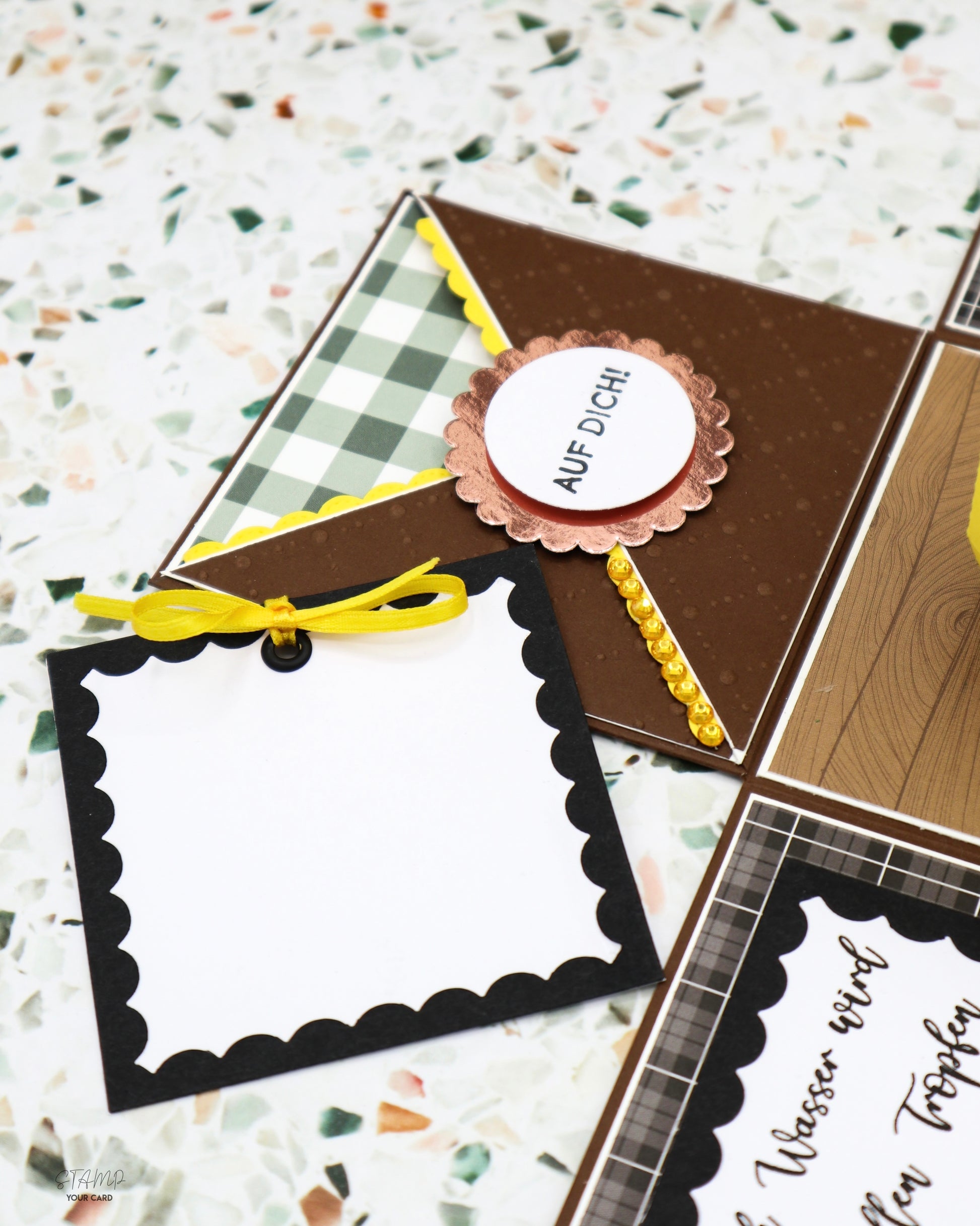 Zwei Einschubkarten oben und unten werden in Blanko mitgeliefert. Diese kannst du mit deinem persönlichen Geburtstagswunsch etc. beschriften.