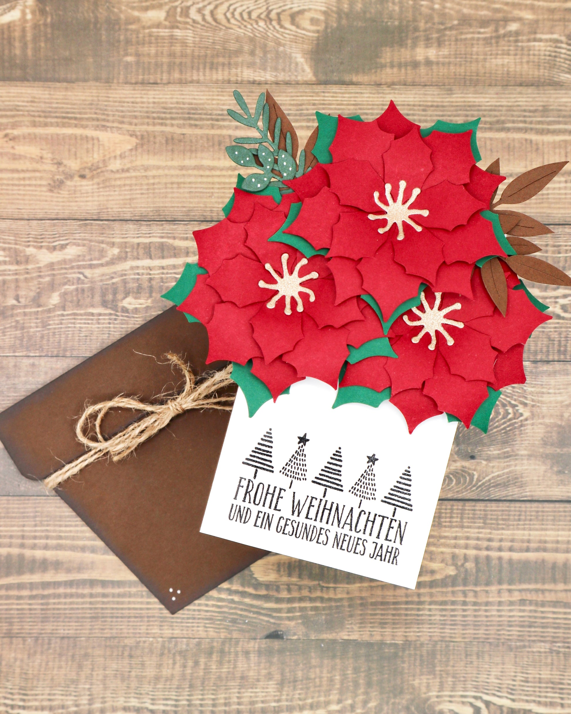Die Weihnachtssterne lassen sich herausziehen. Darauf befindet sich ein gestempelter Weihnachtsspruch. Bei Bedarf kann die Rückseite beschriftet werden.