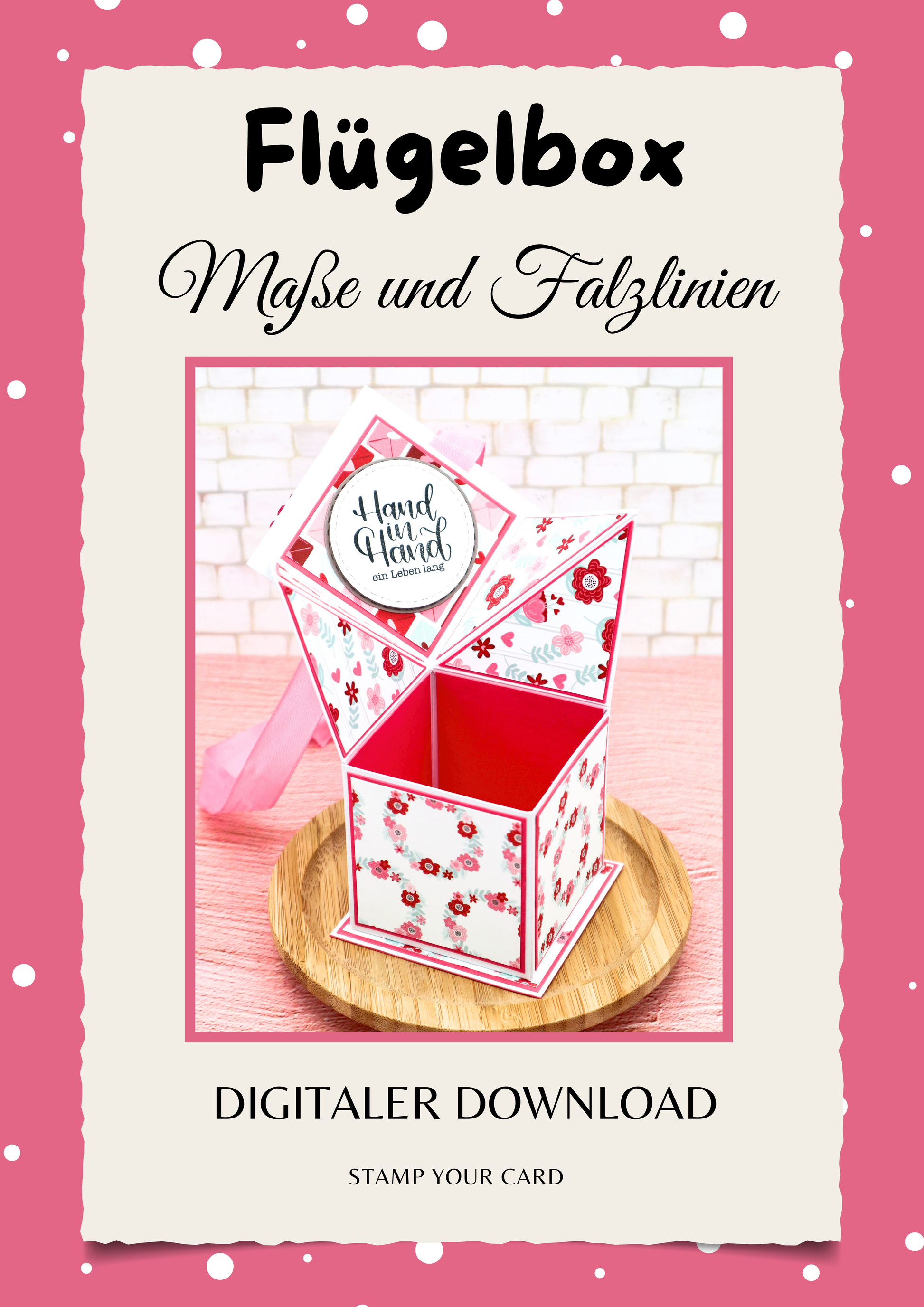 Dieses PDF enthält keine Schritt-für-Schritt-Fotoanleitung. Die Umsetzung erfolgt über meine Bastelvideos – das PDF bietet dir die Maße und Falzmarkierungen übersichtlich auf einen Blick.