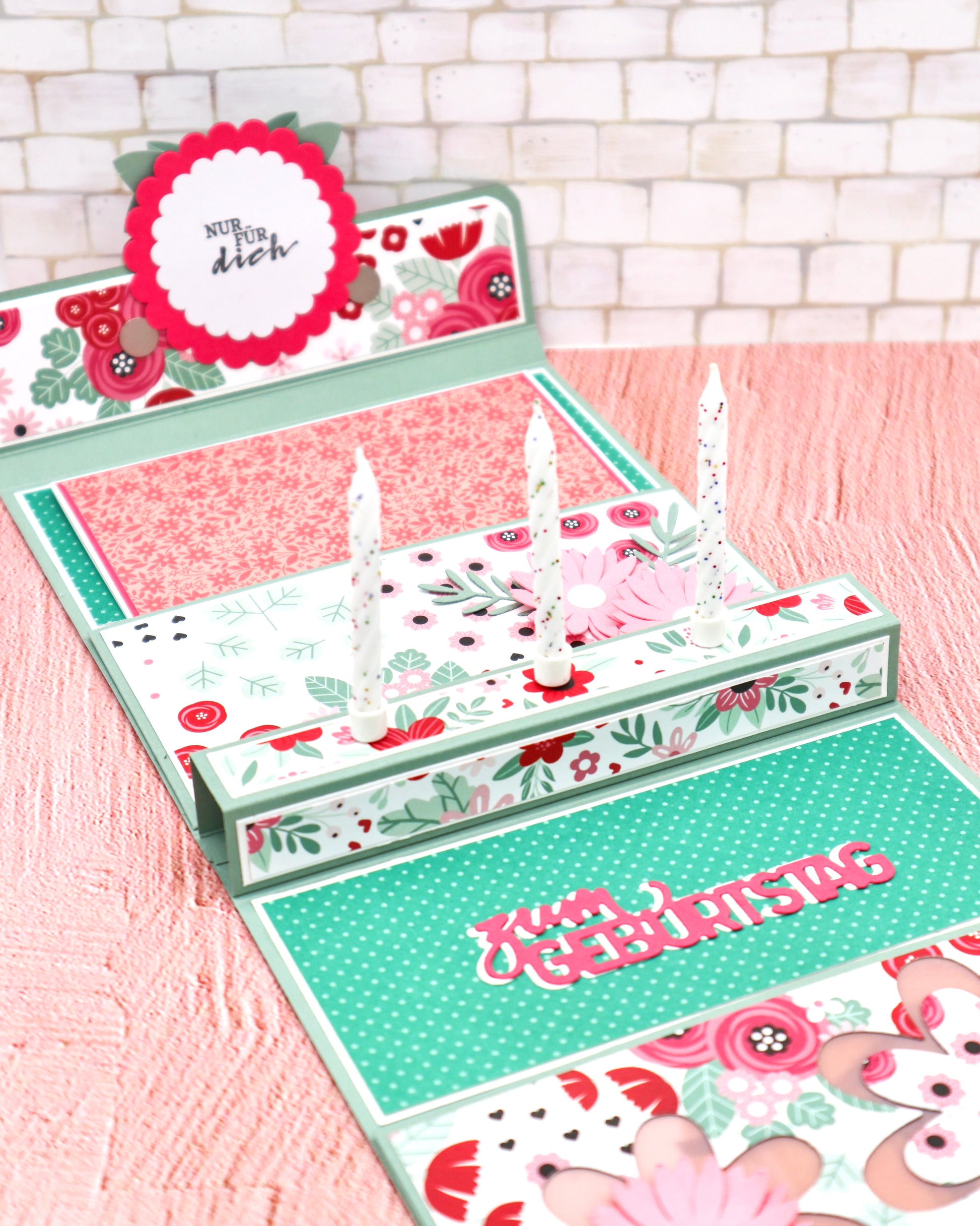 Material: Cardstock, Designpapier, Dekoelemente, Geburtstagskerzen