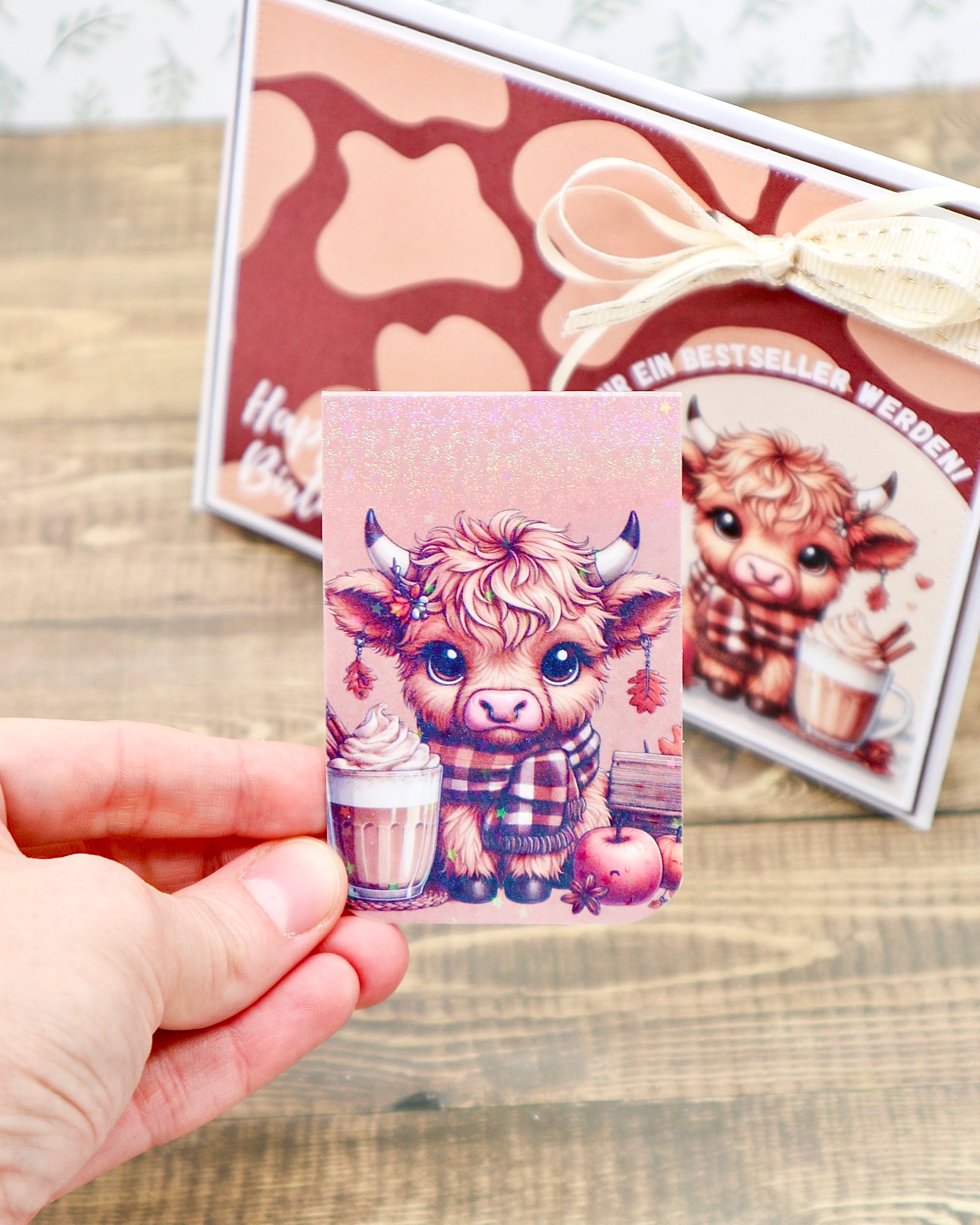 Diese besondere Geburtstagskarte ist mehr als nur ein Gruß – sie ist zugleich ein kleines Geschenk! Das Highlight: Ein magnetisches Lesezeichen mit süßem Kuh-Motiv, das sich perfekt für alle Bücherliebhaber eignet.