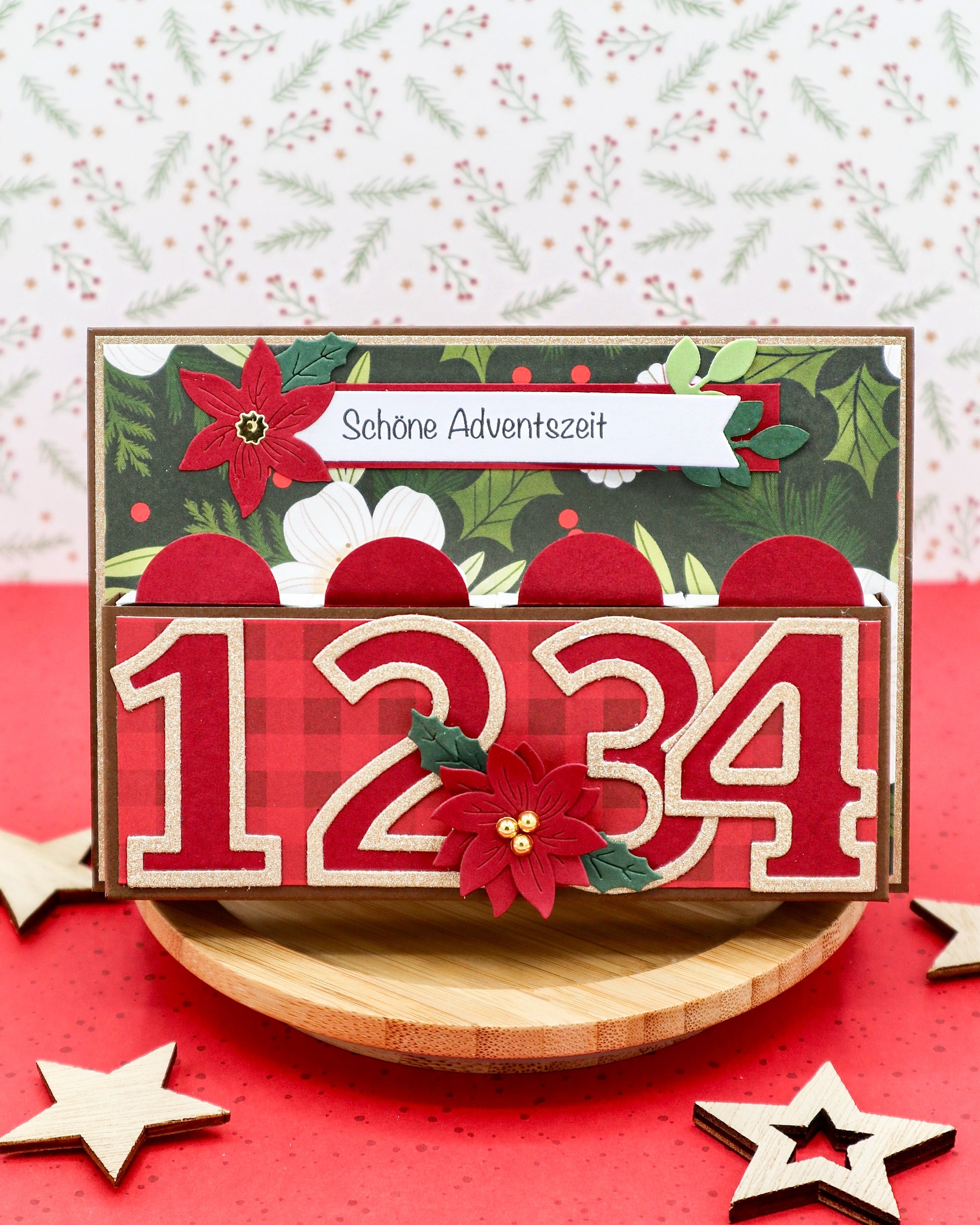 Diese liebevoll gestaltete Mini-Adventskalender-Karte kombiniert festliche Optik mit einer süßen Überraschung für die vier Adventssonntage.