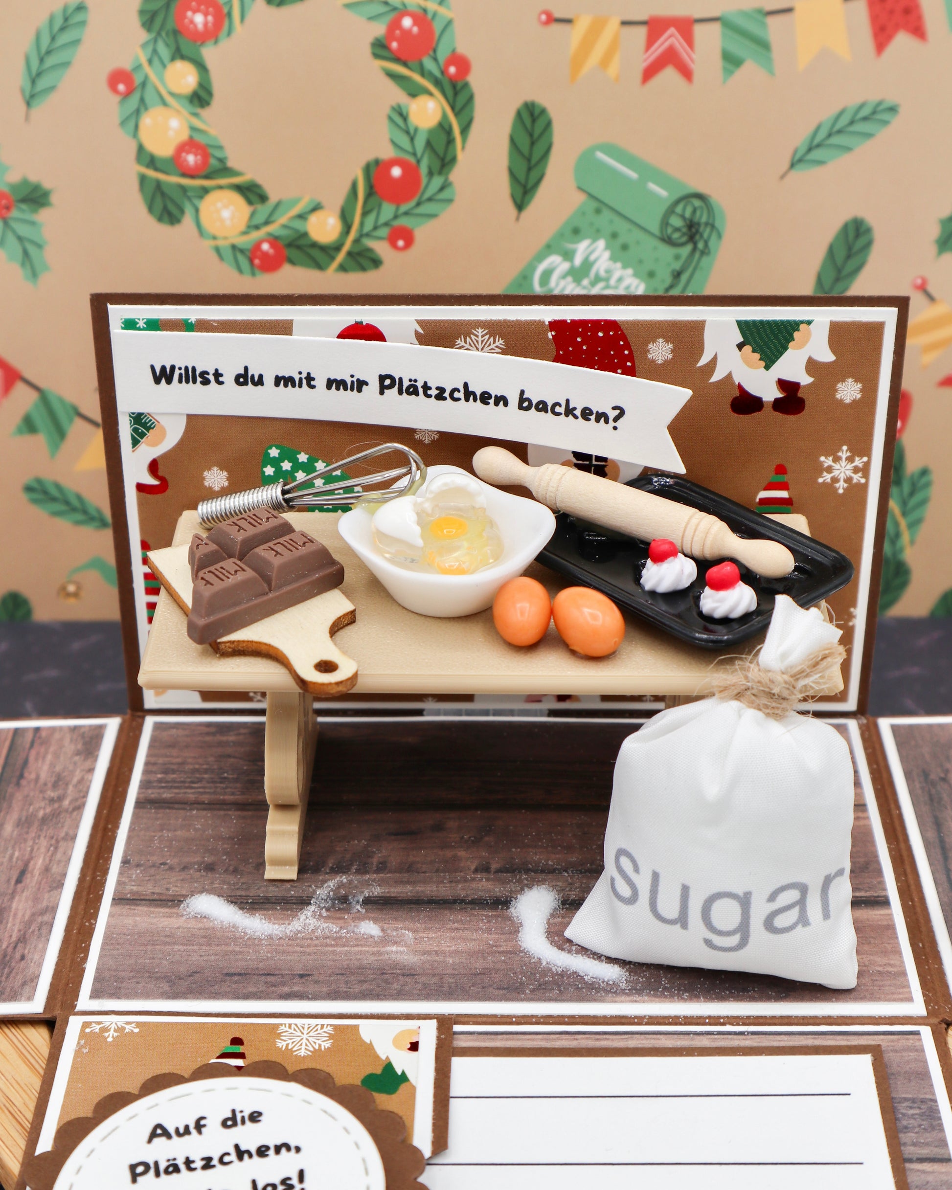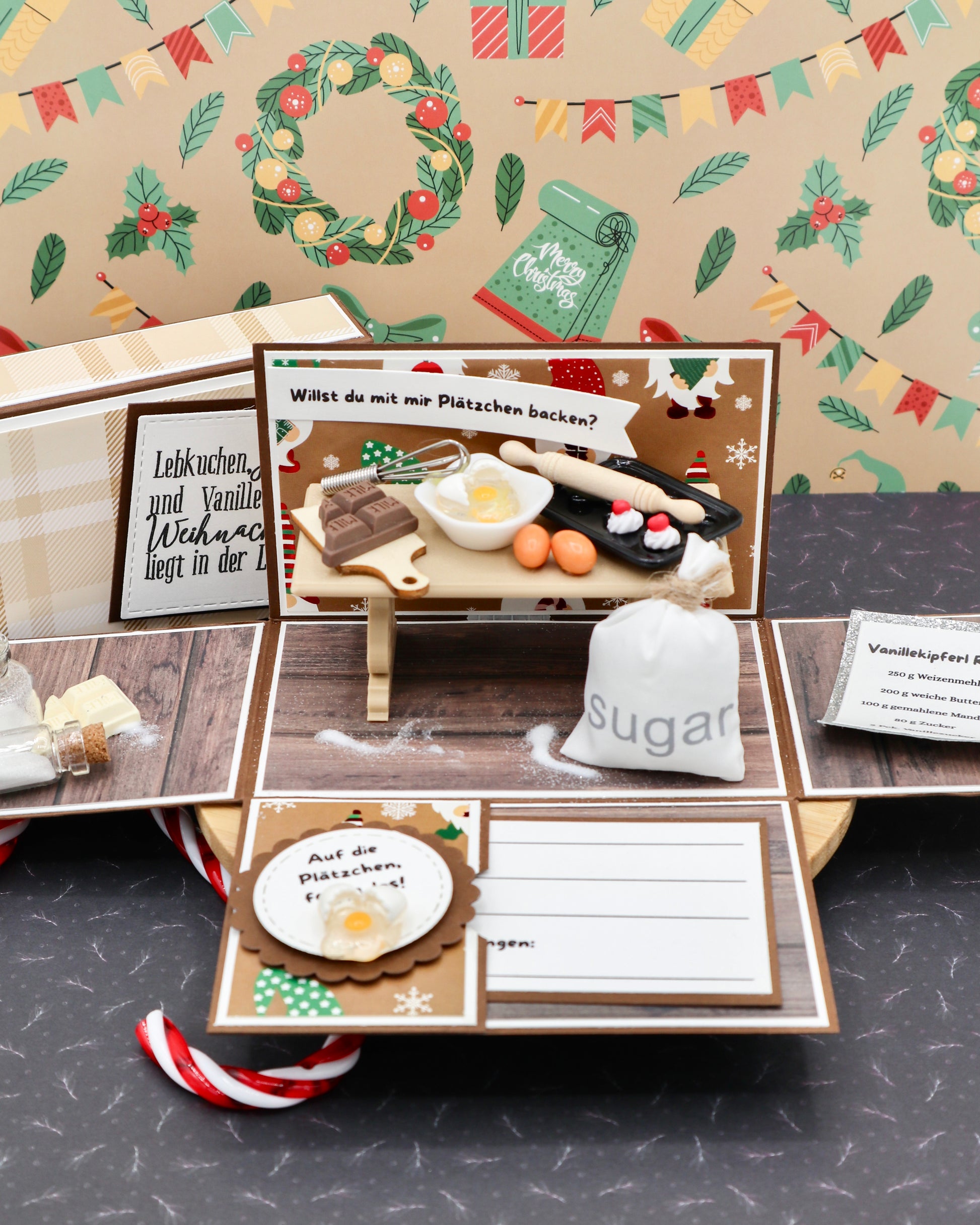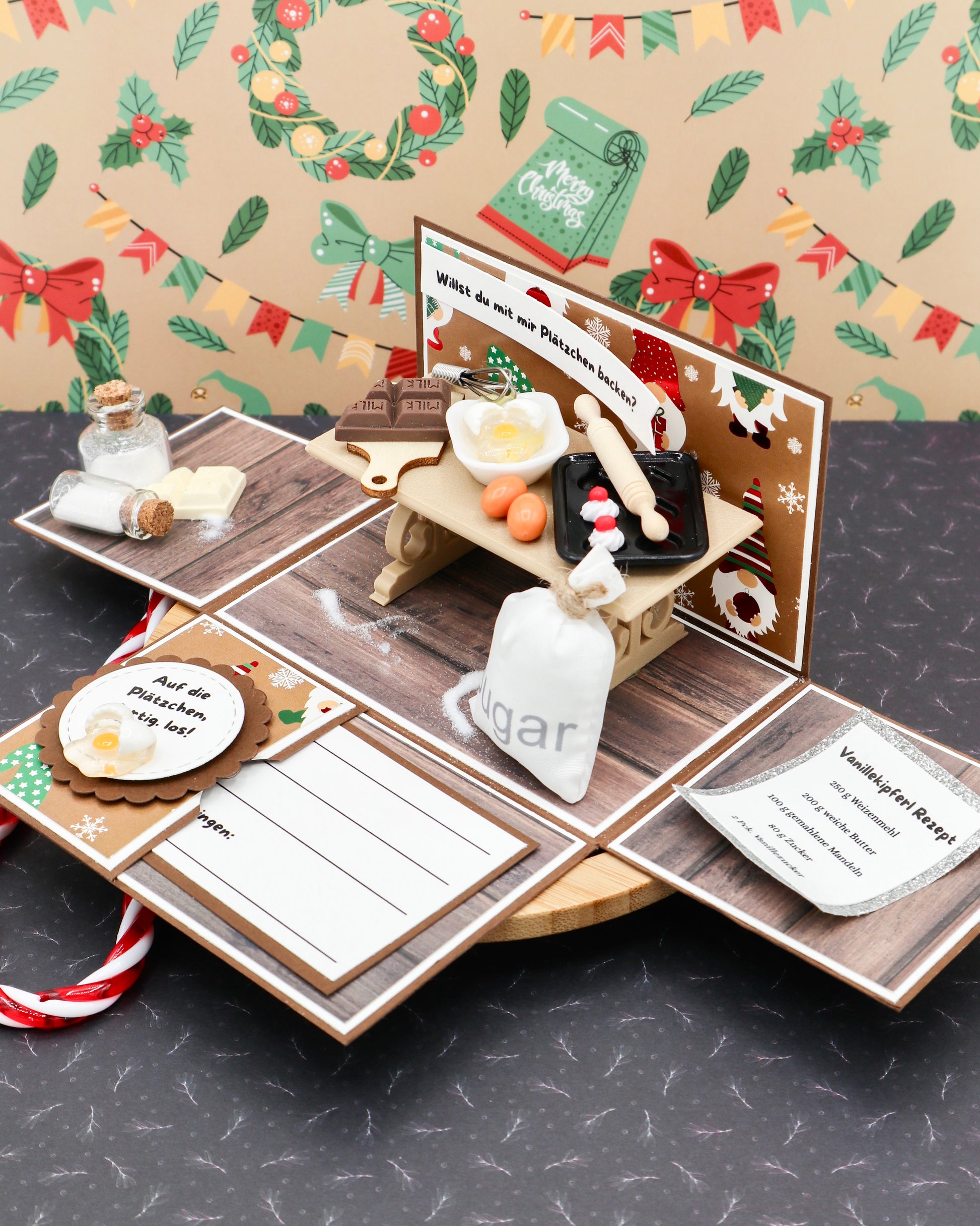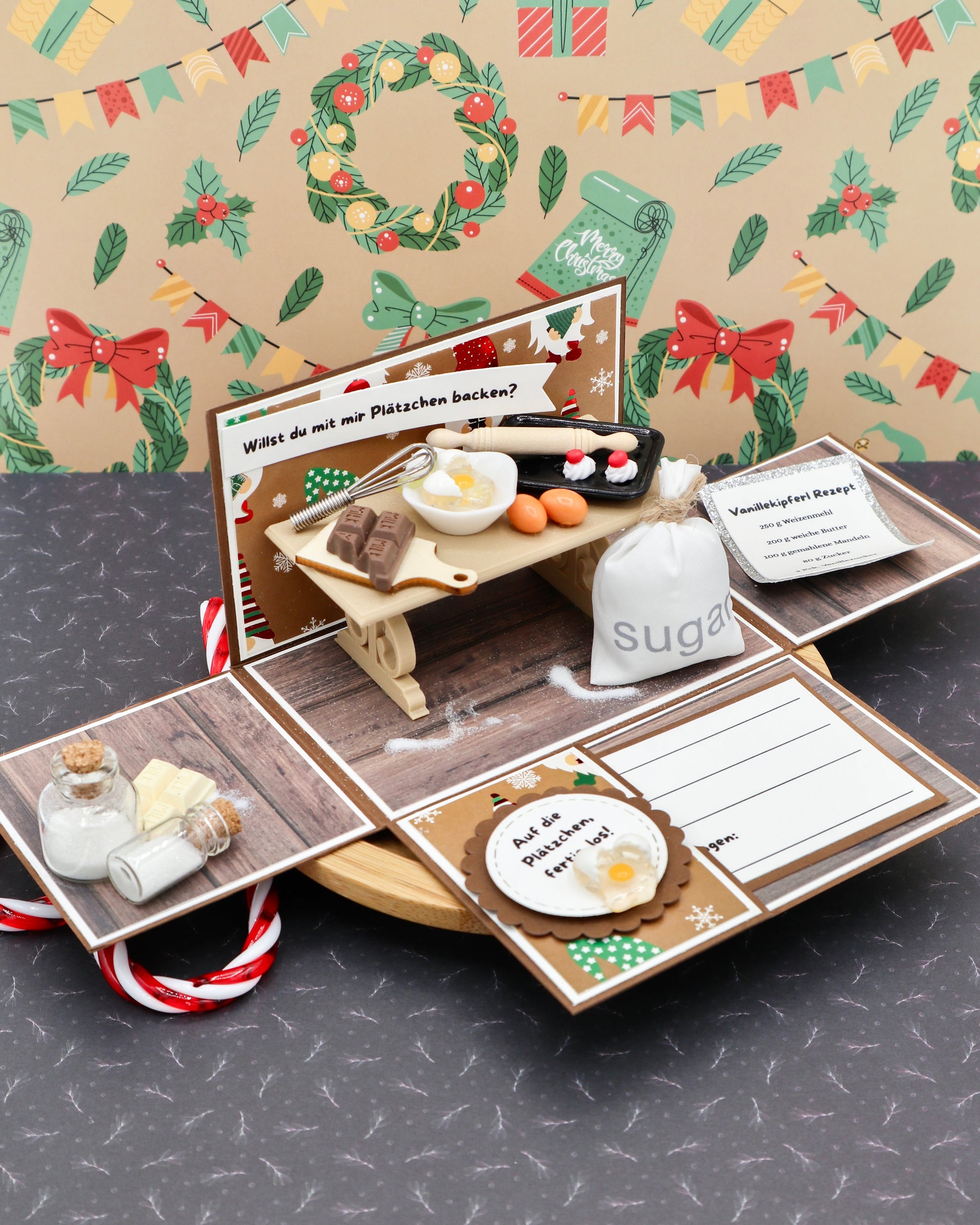 Diese Plätzchen Explosionsbox ist das perfekte Geschenk für alle, die zur gemütlichen Weihnachtsbäckerei einladen möchten – oder einfach eine außergewöhnliche, handgemachte Überraschung verschenken wollen.